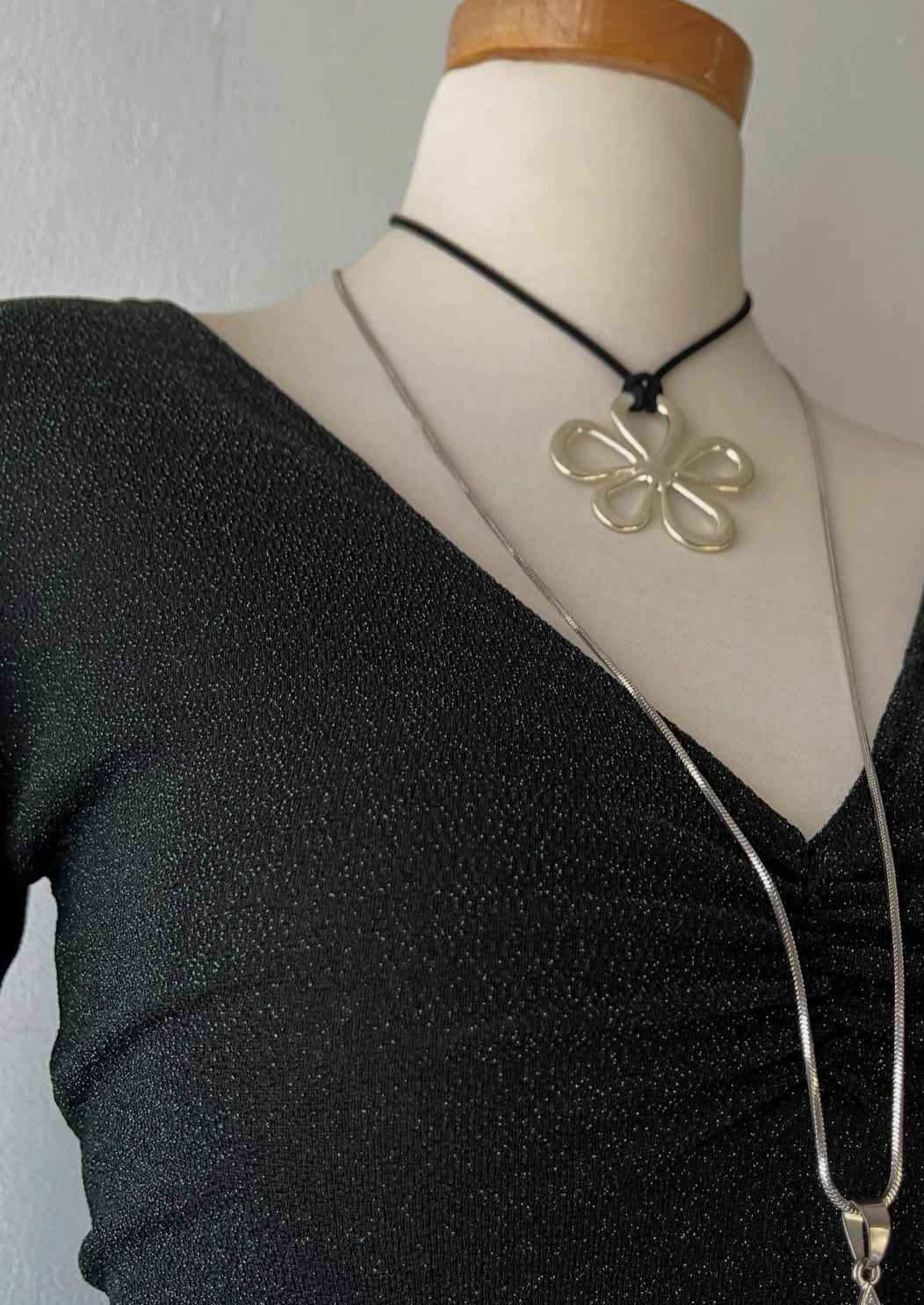 Bell-sleeved top with silver sparkles