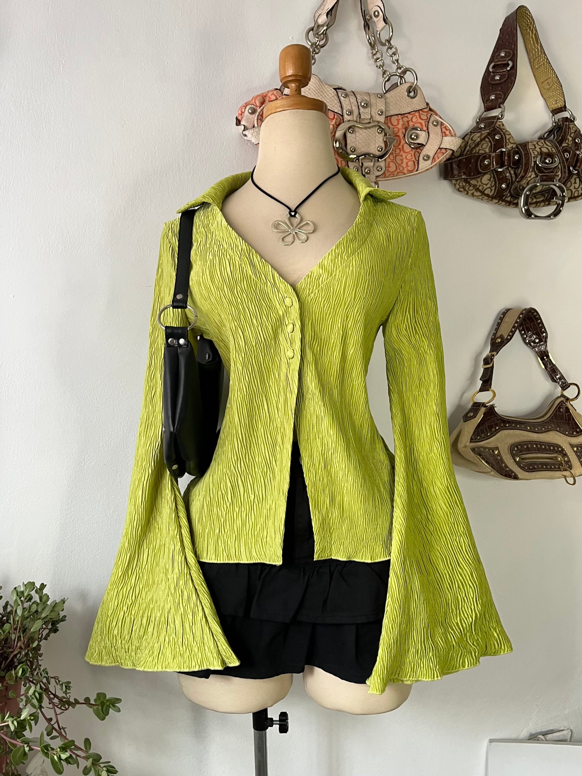 Lime green blouse with super flared sleeves