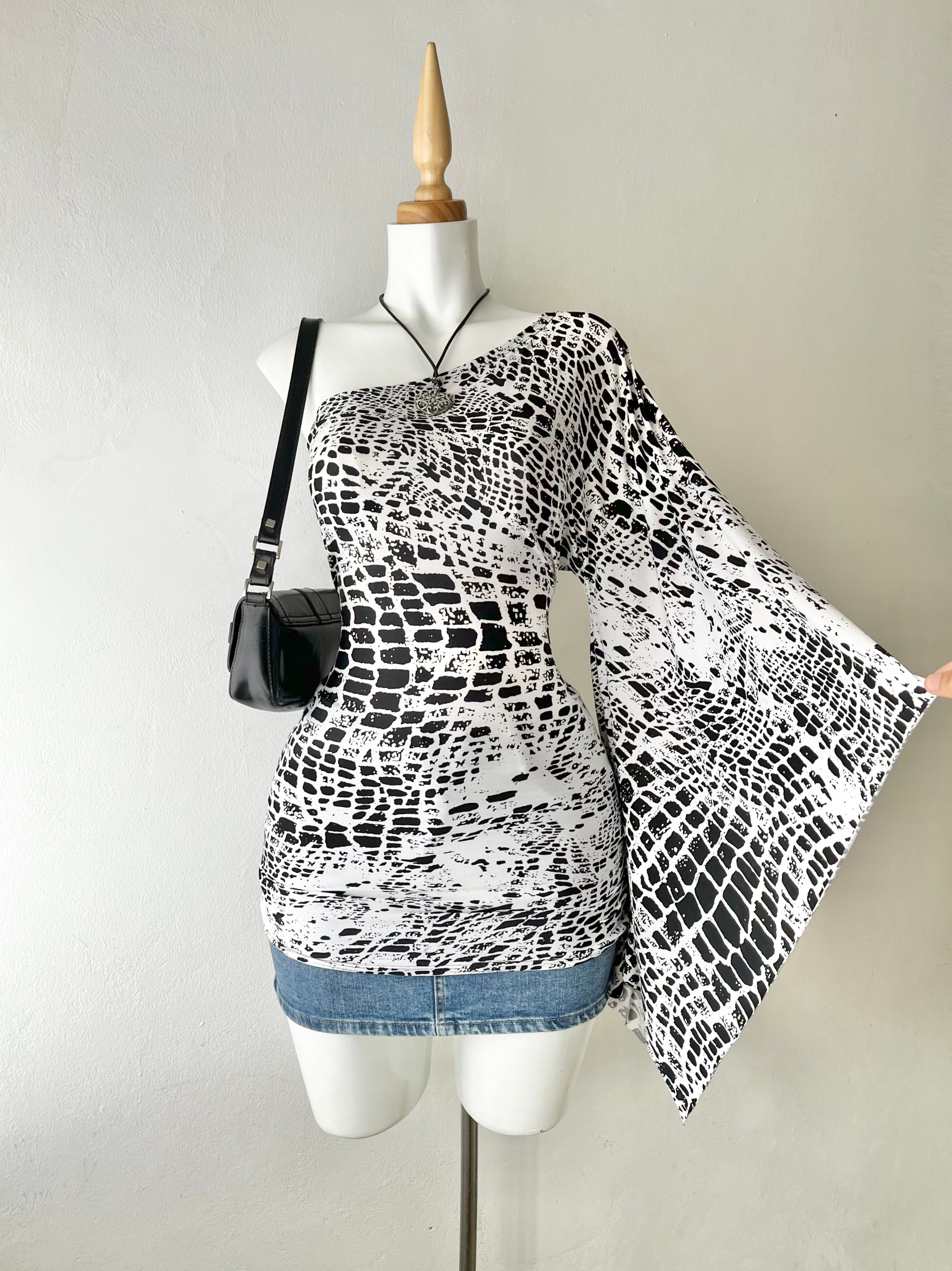 Iconic one-shoulder poly-dress