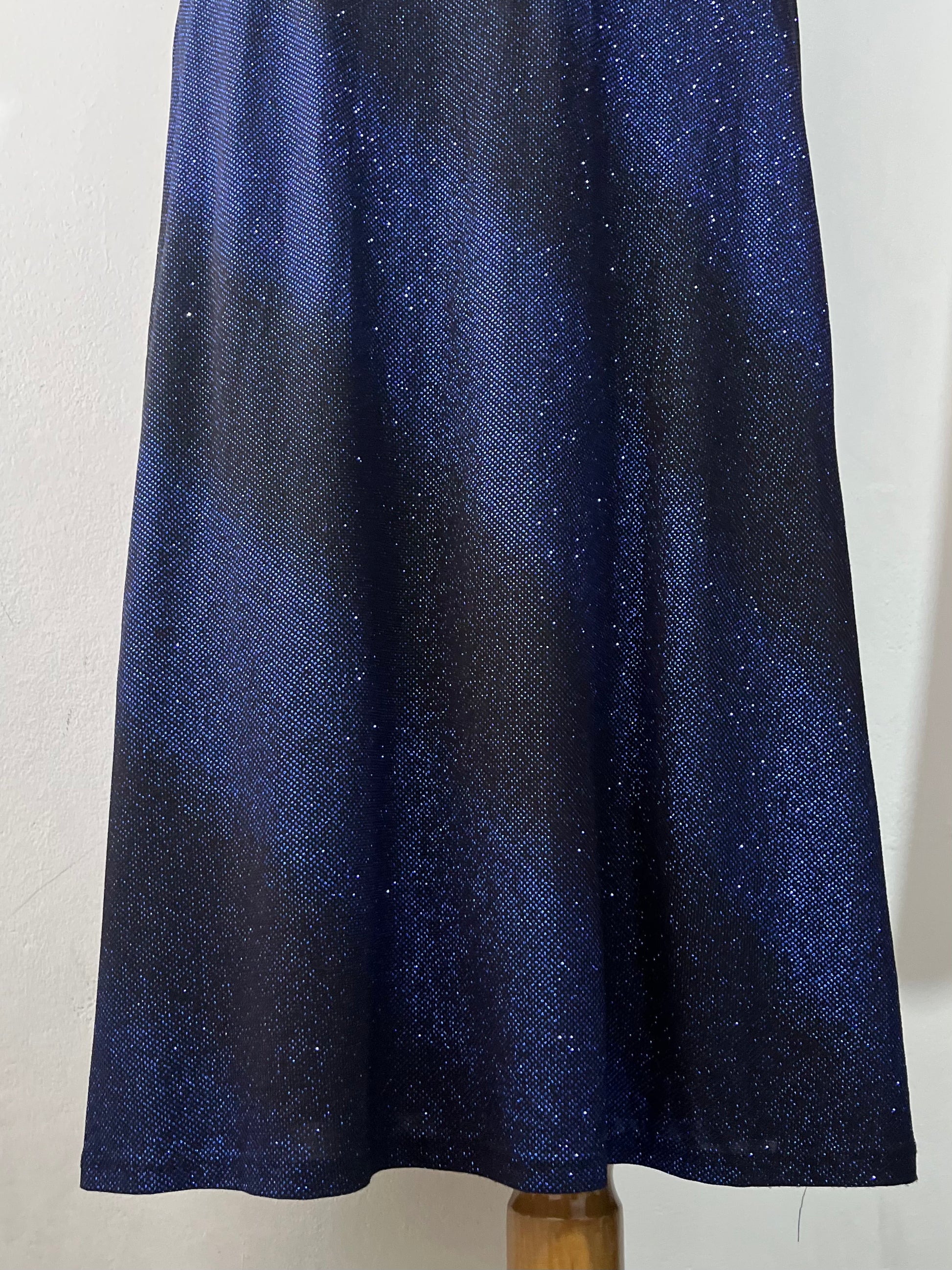 Long noir and blue glitter dress with back bow