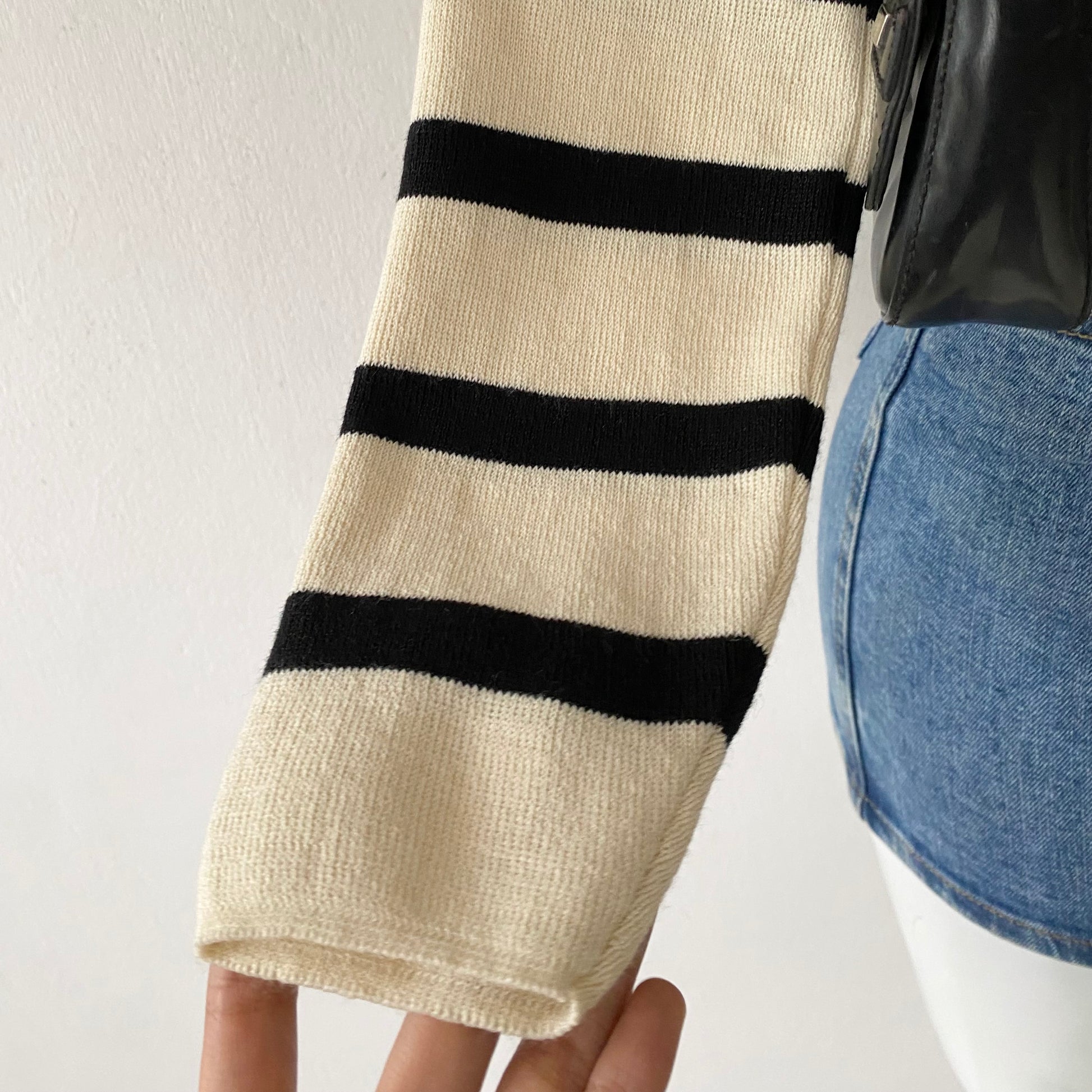 Long-sleeved striped knit top