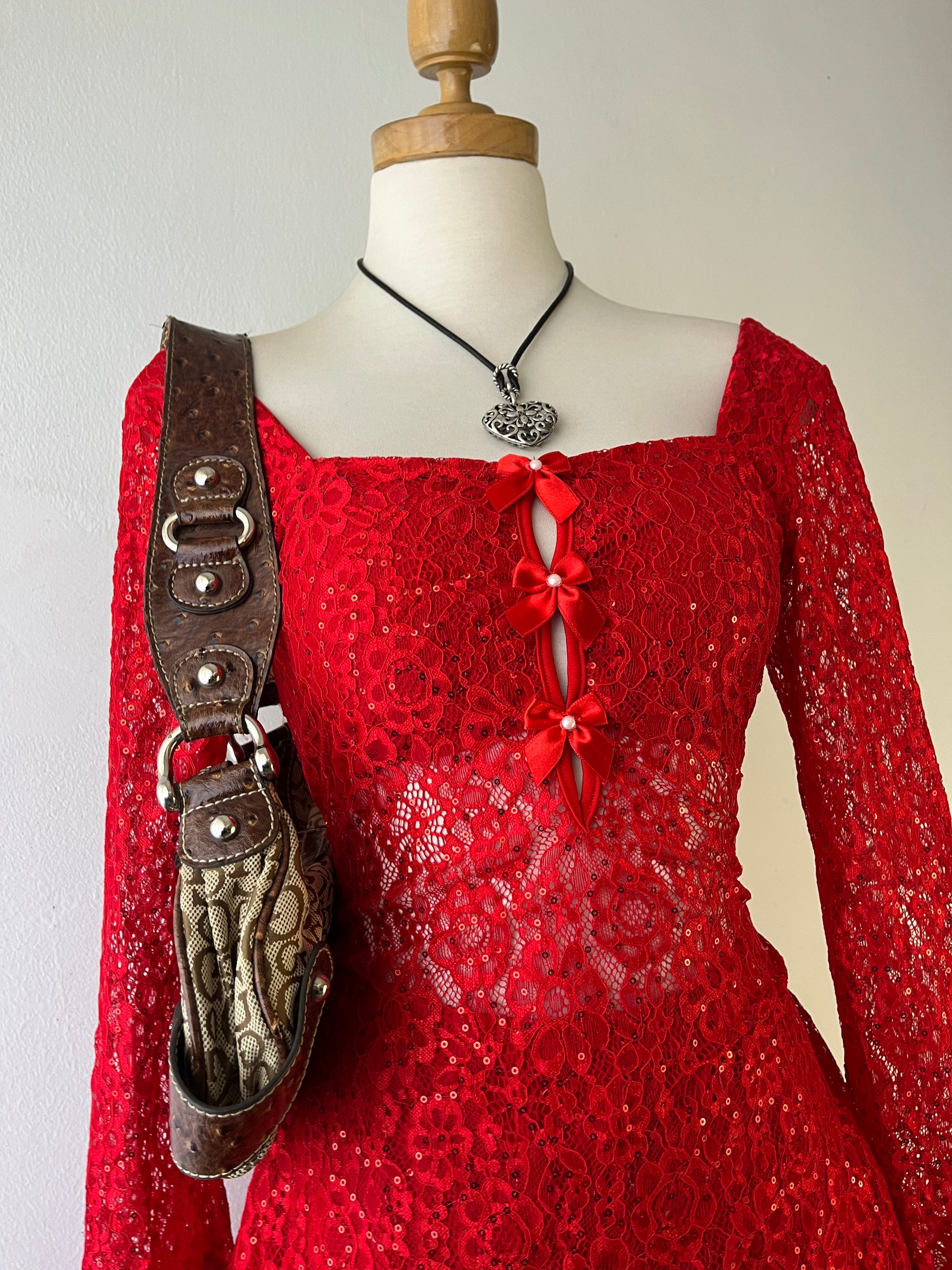 Red lace dress with flared sleeves