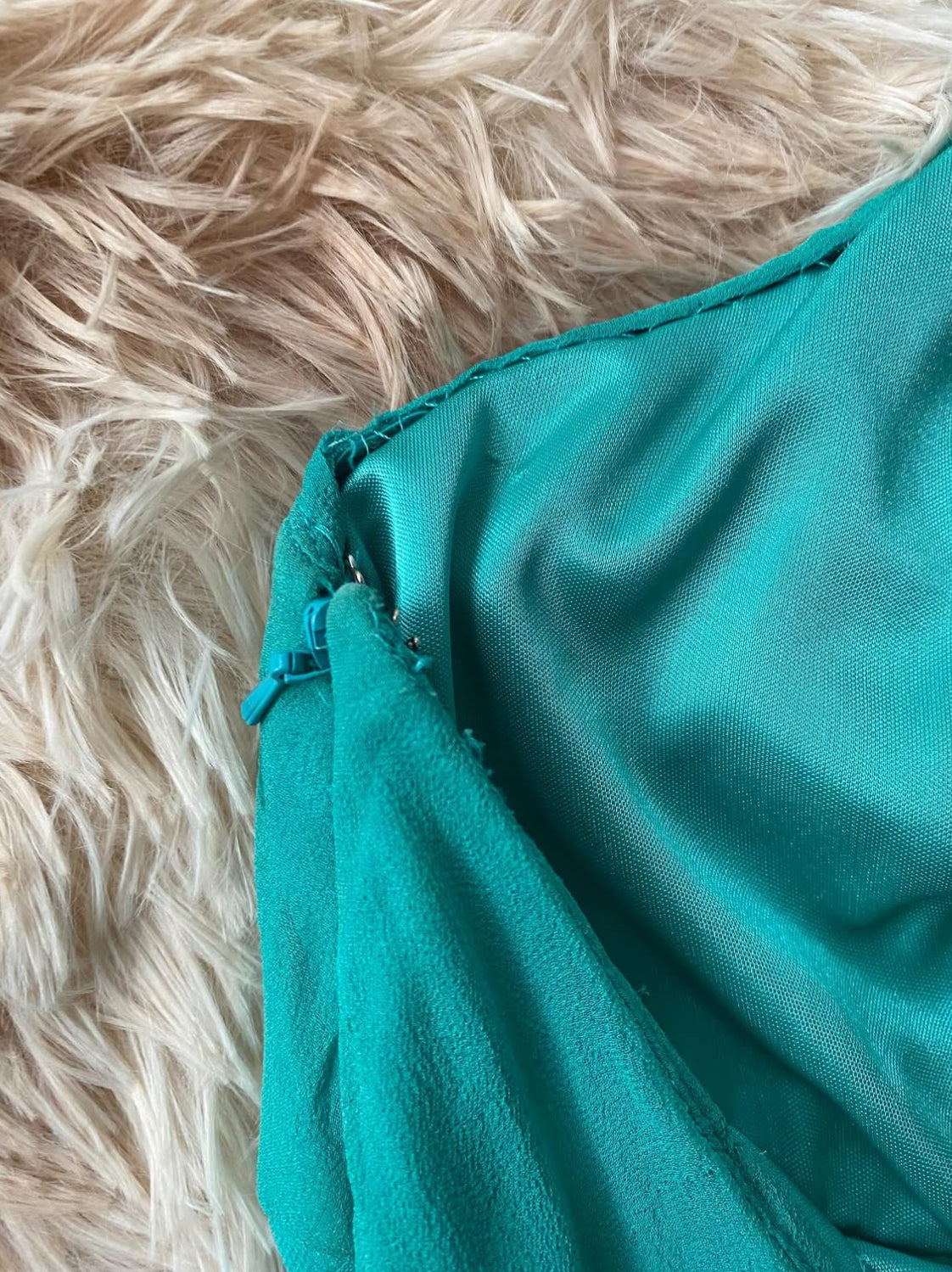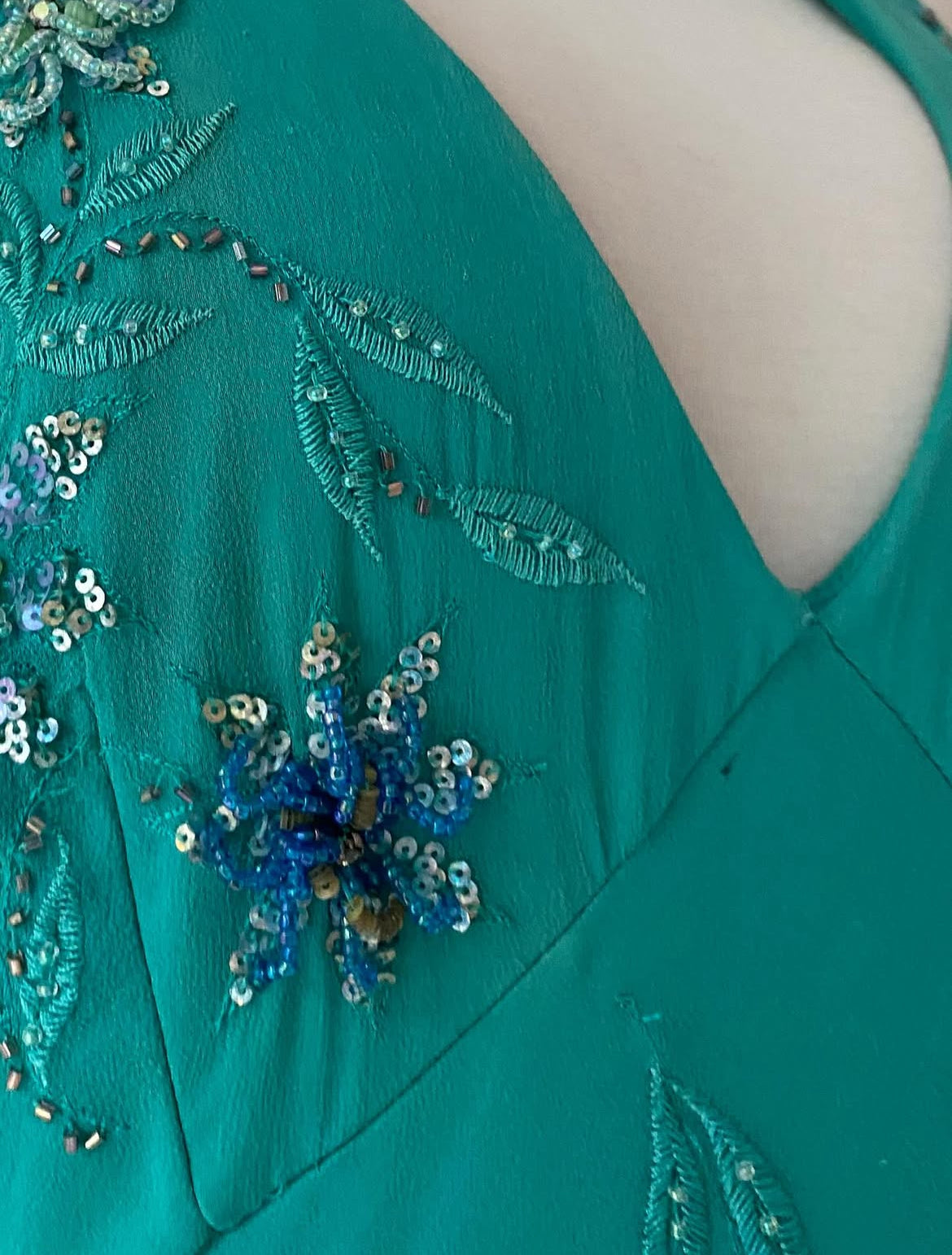 Turquoise silk dress with sequins